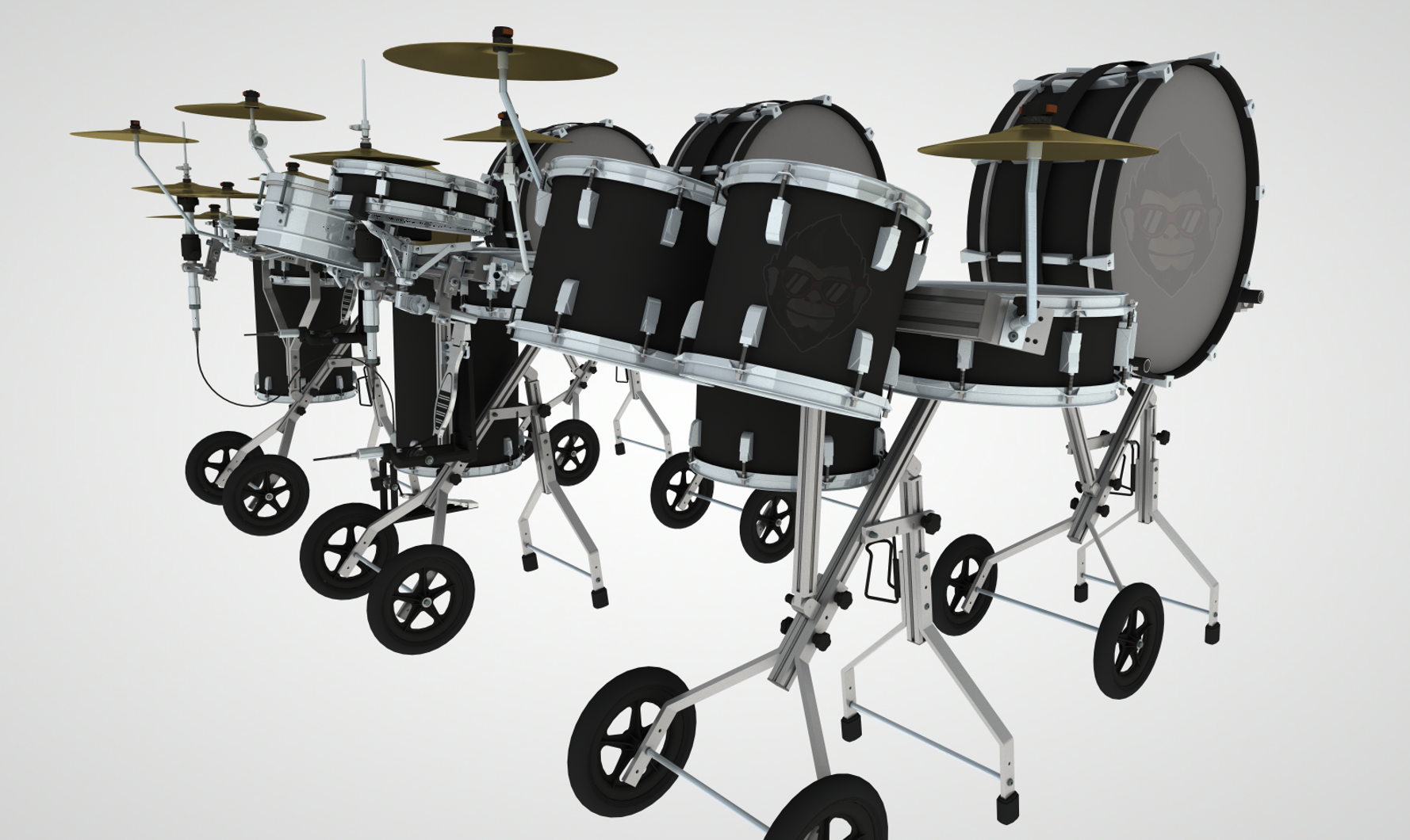 Unsere Fahrgestelle für Schlagzeuge bestehen aus einem Leichtmetall-Rahmen. Die Anbauteile werden über ein Schienenprofil positioniert und mit Schrauben und Nutensteine befestigt. Die stufenlose Positionierung ermöglicht es dem Benutzer eine individuelle und optimale Gestaltung seines Instruments.